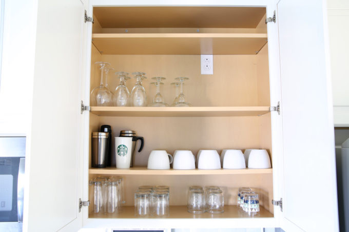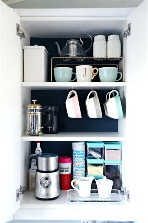 خصصي مكانًا قريبًا لوضع الأكواب دائمة الاستعمال ويفضل أن تكون بالقرب من حوض الغسيل، بينما يمكنكِ تخزين الأكواب قليلة الاستخدام داخل أحد دواليب المطبخ وإحضارها عند الحاجة إليها.