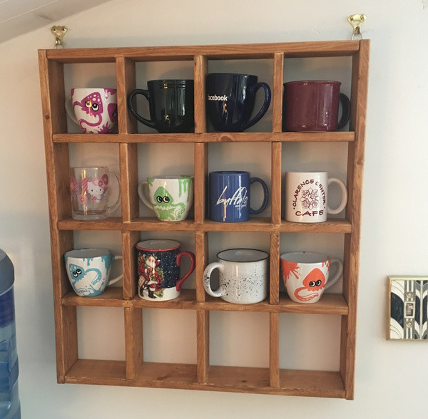 يمكنكِ استغلال أحد الأرفف القديمة وتقسميه إلى رفوف صغيرة، ووضع كوب في كل منها بشكل أنيق ومرتب.