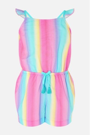 - جمبسوت بناتي قوس قزح: تعشق البنات خاصةً الصغيرات منهن ألوان قوس قزح، يلائم هذا الجمبسوت التنزه في الحدائق والذهاب إلى الشاطئ، ويجعل طفلتك تبدو جميلة ومبهجة.