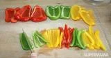 - قطعي بصلة كبيرة شرائح مع فلفل أخضر وأحمر وأصفر