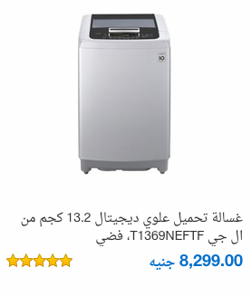 وجه المقارنة | غسالة "إل جي" التحميل العلوي سعة 13.2 كجم | غسالة "إل جي" التحميل الأمامي سعة 7 كجم |