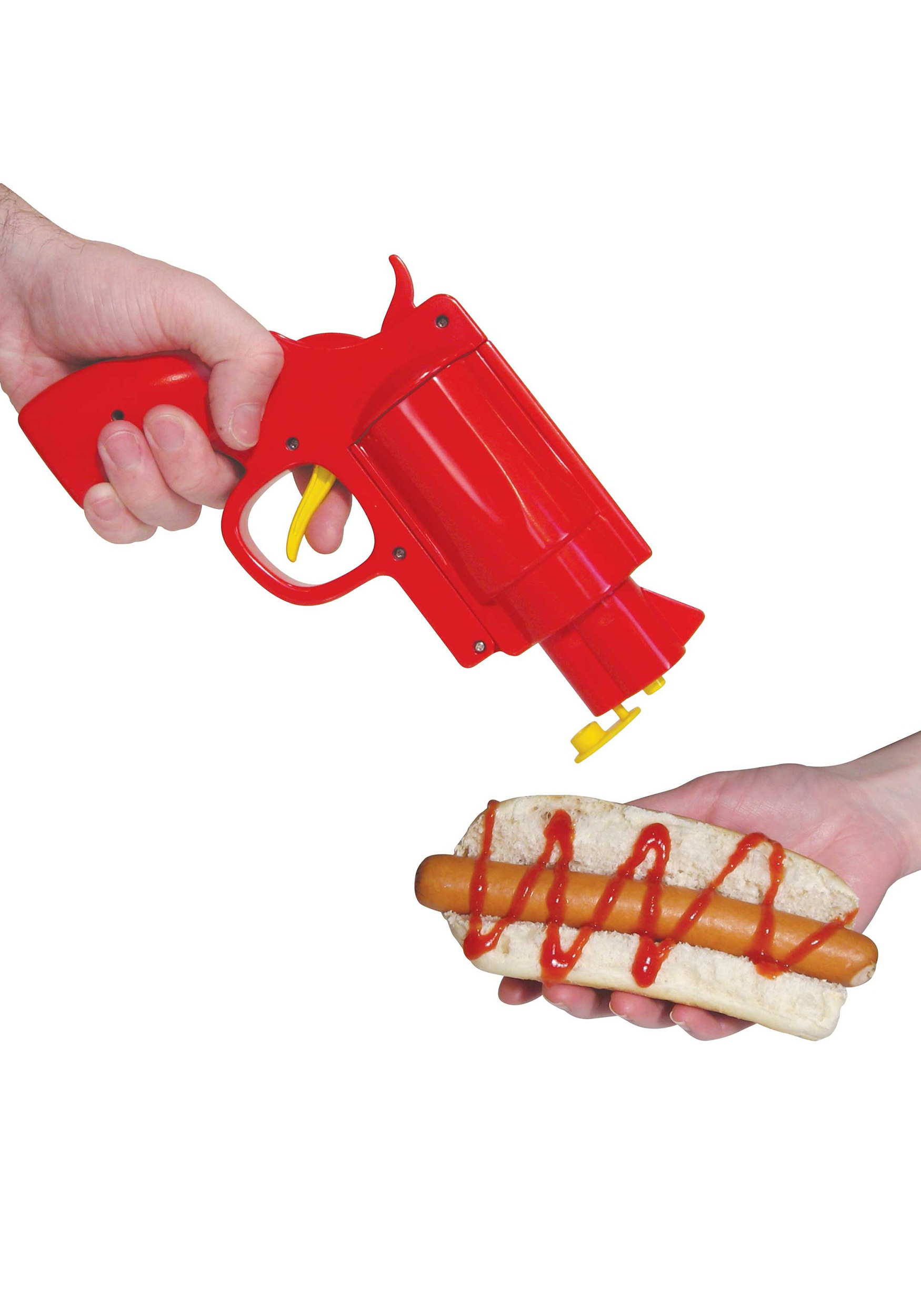 هل قمتِ بقتل ساندوتش من قبل؟ مسدس الكاتشب والمسطردة هو أداة جديدة ربما تفاجئكِ على شاشة التلفاز، وربما سيحبها أطفالك، ولكنكِ بالتأكيد لن تحبذي مشاهدة أطفالك وهم يركضون ممسكين بمسدسات الكاتشب لتلطيخ بعضهم البعض.